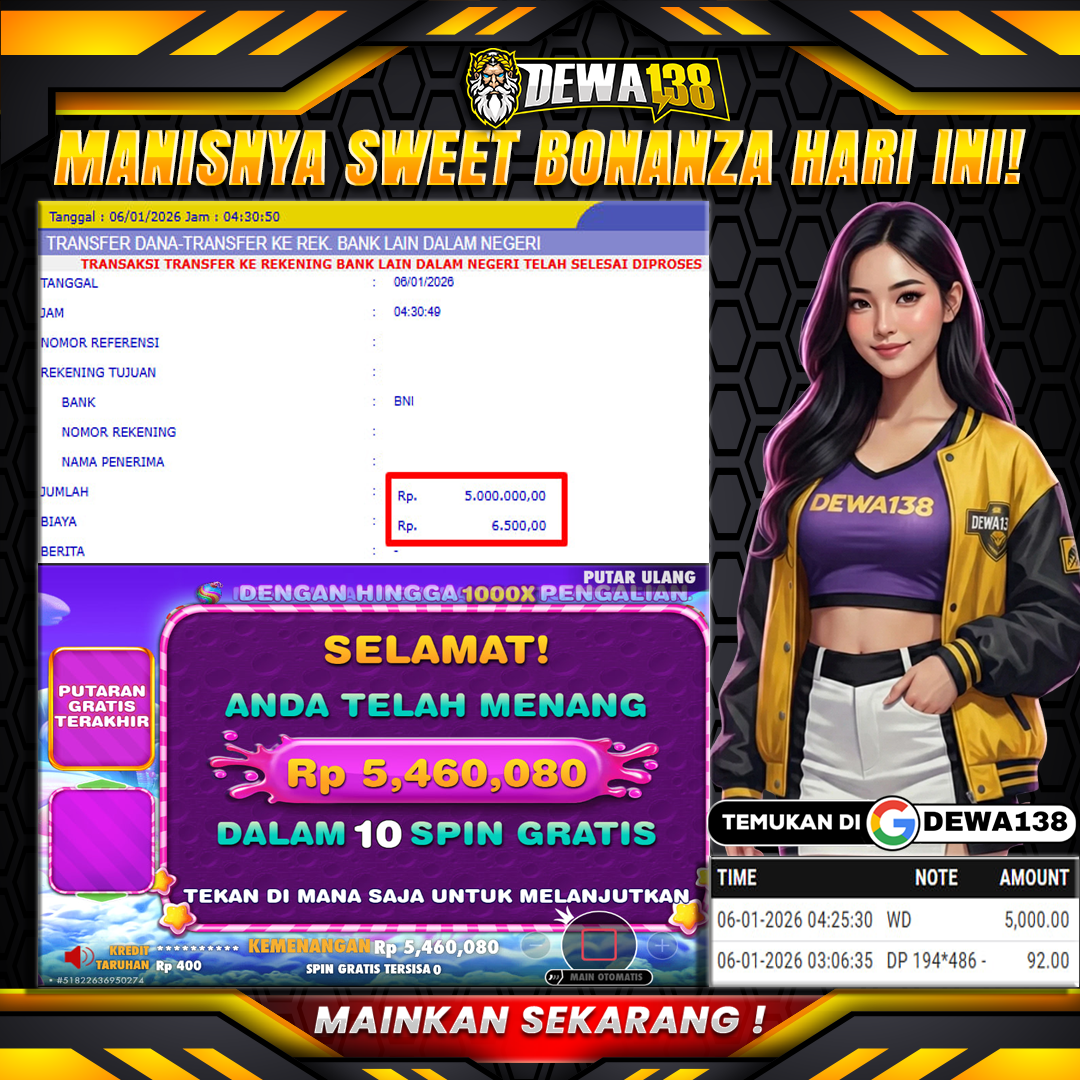 DEWA138 menghadirkan game jackpot vip yang di lengkapi fitur khusus new member hanya dengan modal deposit 92k dijamin akan withdraw 5 juta malam ini.